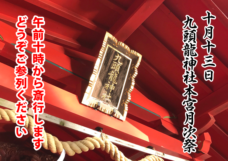 ◆疫病渦中、九頭龍神社本宮月次祭(毎月13日10時斎行)は皆様方のご参列をご遠慮頂いておりましたが、令和5年4月13日から通常通りご参列頂いており、今月も前月のお祭り同様に斎行致しますのでご案内申し上げます。 ◆令和7年…