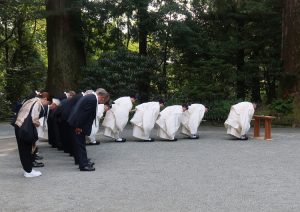殿内での祭典に続き、社頭前庭にて伊勢の神宮を遥拝致します。