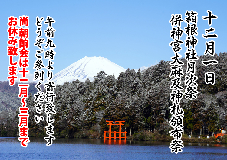 ◆12月1日午前9時斎行の箱根神社月次祭併神宮大麻及神札頒布祭のご案内です。