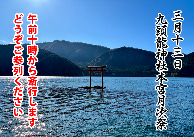 ◆毎月13日の午前中は、祭典の参拝者に限り「箱根九頭龍の森」の入場料が無料となります。尚、祭典以外の日もいつでも参拝出来ます。(入場は終日有料)
